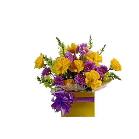 Brighten your space with this charming yellow box adorned with vibrant purple and yellow flowers. Perfect as a decorative piece, it adds a cheerful touch to any room. The floral design brings a sense of nature indoors, making it an ideal gift or a delightful addition to your home décor.
